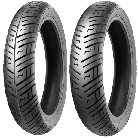 “V” rated (150 mph) Kevlar belted construction rear tyres, full four ply front. Modern tread design for directional water dispersion, long mileage and even characteristics. Very stable at high loads.