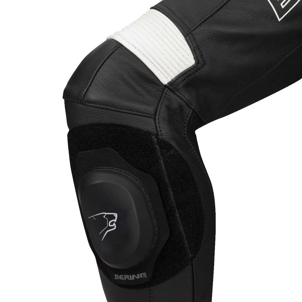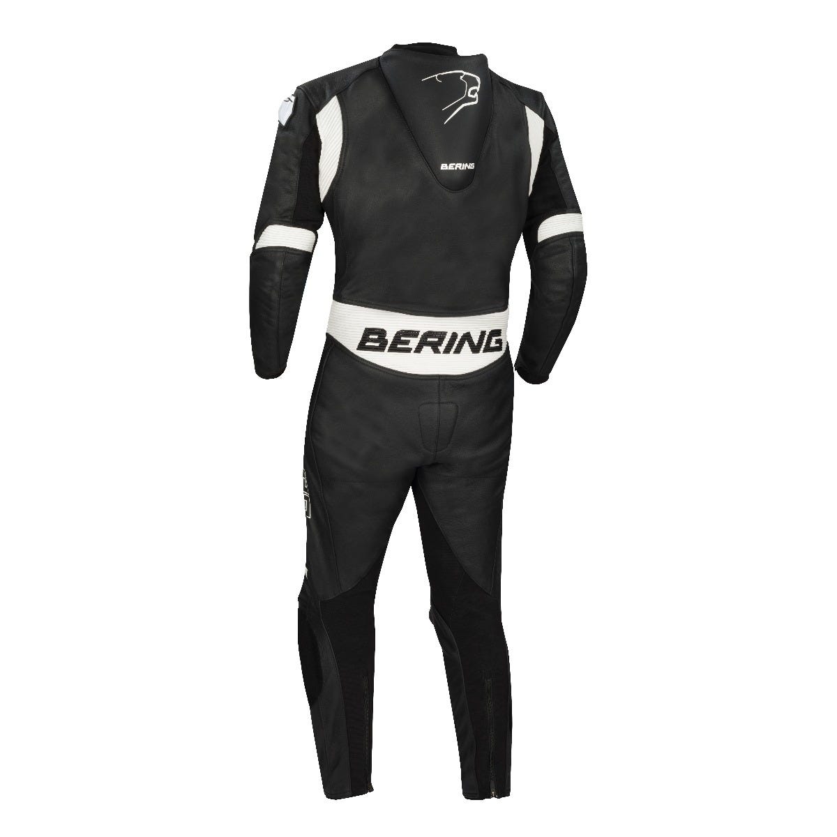OUTER SHELL Cow leather. Stretch. PROTECTORS Adjustable CE elbow protectors OMEGA. CE shoulder protectors. Adjustable CE knee protectors OMEGA. Moulded shoulder plates. Aerodynamic dorsal hump. COMFORT Body Fit. Zipped cuff fastening. Ankle zips. Elbow gusset. Knee gusset. Shoulder gusset. Back gusset. FIXED LINING Removable mesh lining.