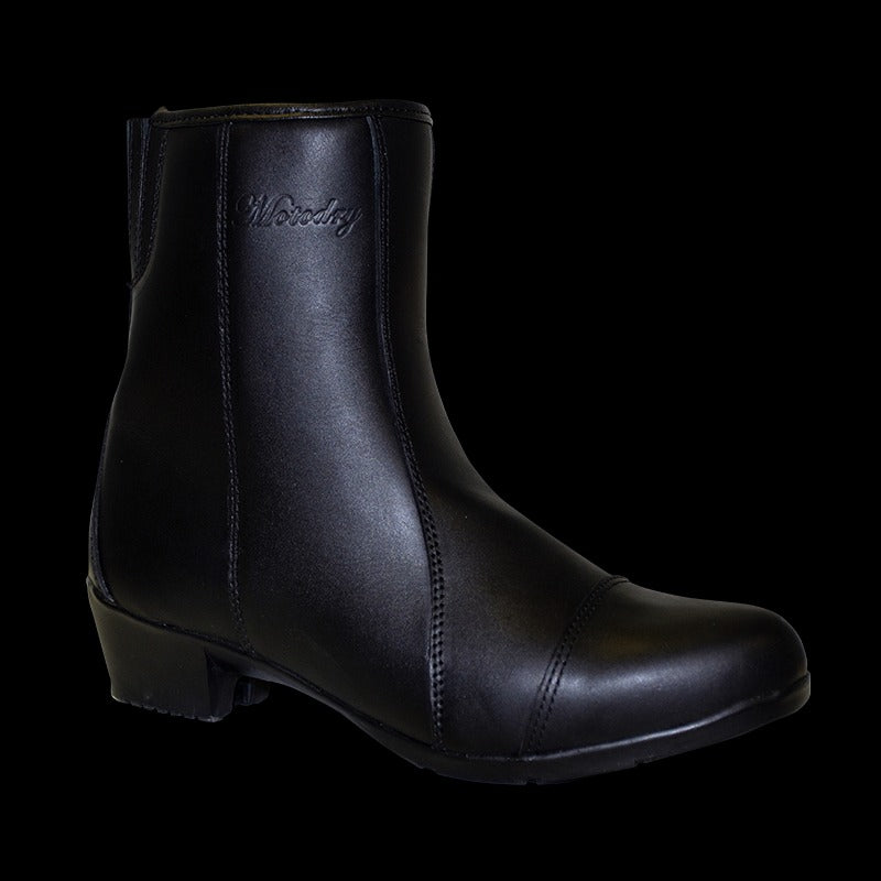 High quality Top Grain Leather Full Length Zip Closure Classy Mid-Height Heel, & Embossing Gusseted / Stretch Rear calf panel, for Flexibility & Comfort Waterproof & breathable membrane Mid-shin boot height, for style Non-slip rubber sole for grip Preformed orthopaedic/anti-vibration foot bed for comfort Soft comfort Lined Reinforced toe & heel protection