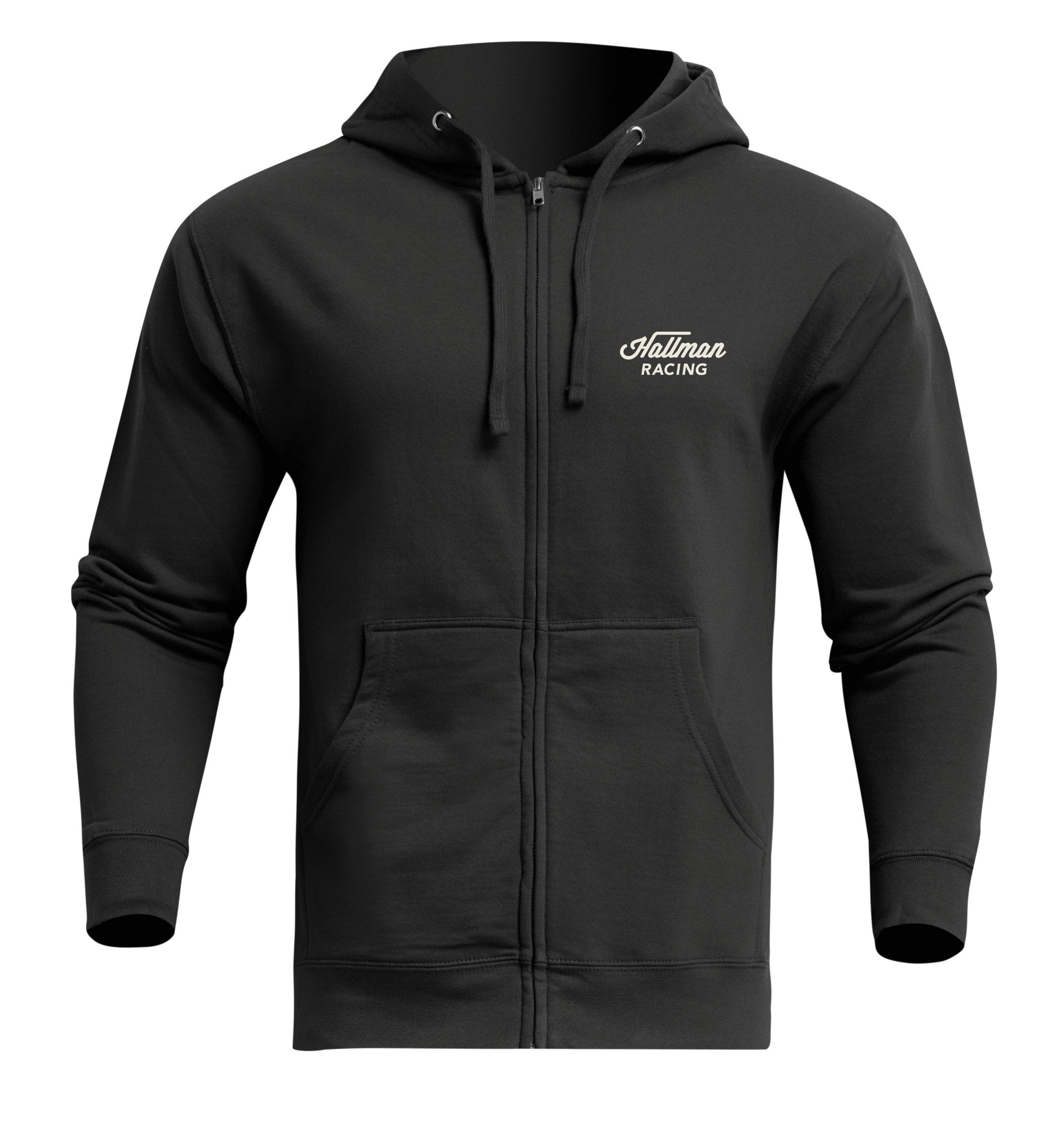 Midweight zip-up hooded sweatshirt with screen printed graphics.