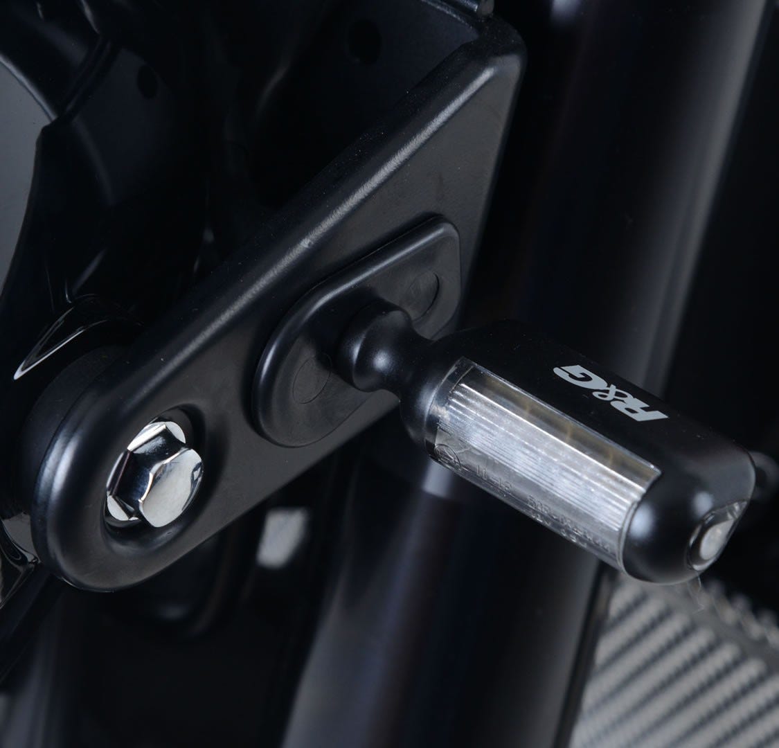 These R&G Front Indicator Adapters are made to suit the Kawasaki Z900RS '18- models and allow the use of our own micro indicators (RG370/RG371/RG372) as front indicators, getting rid of those large OEM indicators and helping give your bike a more sporty look.Please note: NO indicators not included with this kit.