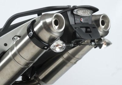 Tidy up your rear end with a stainless steel R&G Tail Tidy/Licence Plate Holder. Made from stainless steel for strength and powder coated black for great looks and durability. Our tail tidy units are easy to fit and transform the rear of the bike. Supplied with an replacement rear brakelight with built in licence plate illuminator. This model is suitable for the KTM 950 Supermoto, 950 Supermoto R, 990 Supermoto and 990 Supermoto R ('08-'12) and KTM 990 SMR Models ('12- onwards) and can be fitted with OEM indicators, (as pictured) or our own aftermarket micro/mini indicators (RG370/RG371) - please see related products for more details.