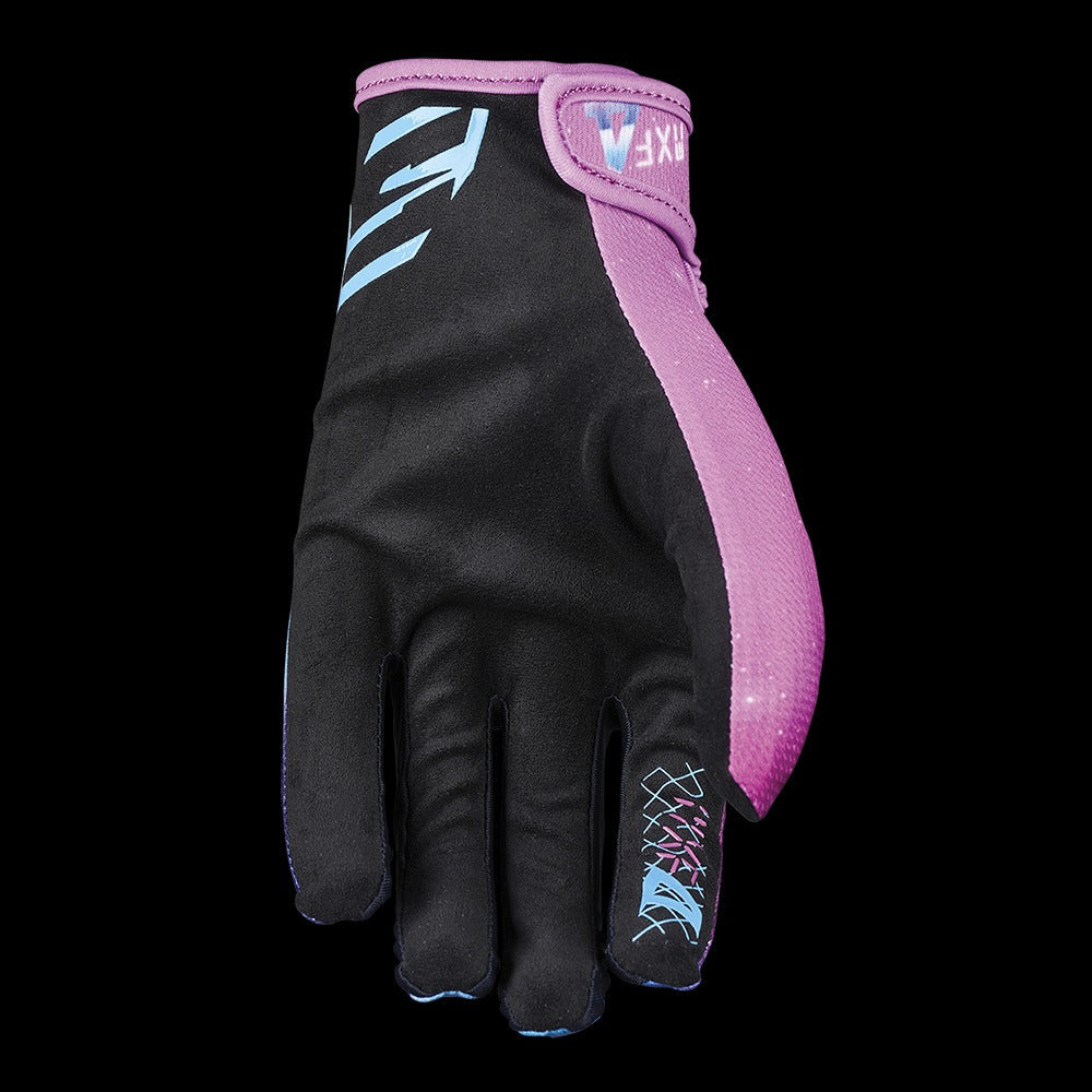 THE MOTOCROSS GLOVE THAT GOES BACK TO BASICS The affordable motocross glove that isn t weighed down with anything extra. Polymesh topside construction, AX Suede synthetic leather palm, Lycra- finger contours, palm reinforcement, closure with a TPR and Velcro- tab, silicone print on the index finger for better handlebar grip nothing gets in the way of the rider s movements. The MXF4 is sure to satisfy those who believe that a motocross glove should be kept to an absolute minimum for it to take things to the max. TECHNICAL FEATURES Polyester Mesh construction (topside) / AX Suede synthetic leather (palm) Logo and graphic sublimated prints Palm reinforcement underneath synthetic leather Fourchettes (finger contours) in Lycra- TPR + Velcro- tab closure system Silicone print on the inside of the index finger for good handlebar grip