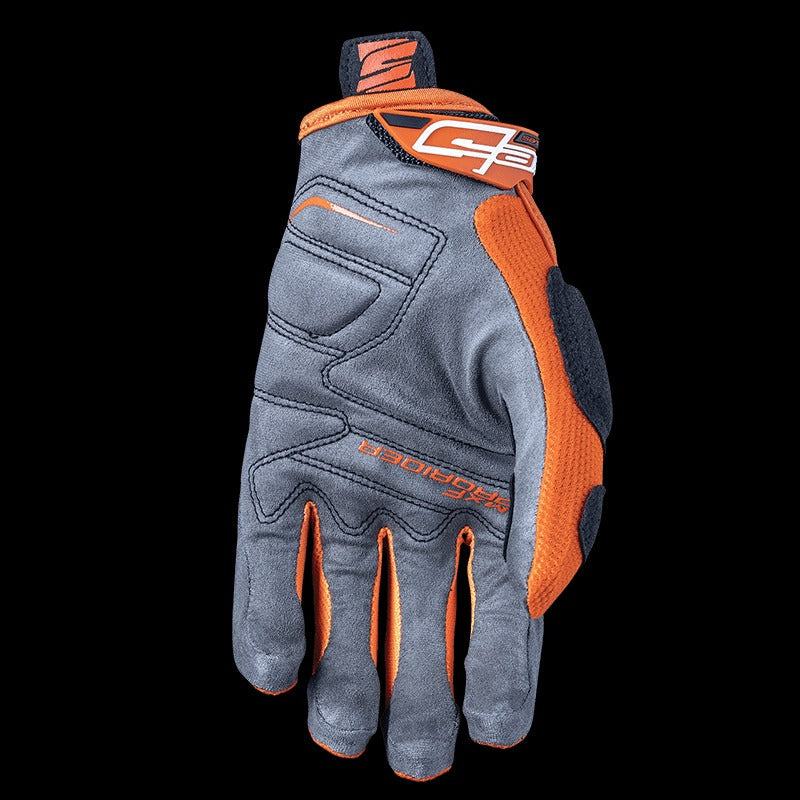 THE ULTIMATE MX GLOVE This is the latest generation of motocross gloves built based on the experience of MX or Enduro Grand Prix FIVE riders. Even more lightweight, thin, elastic, and breathable in their S version than the original MXF PRORIDER. The topside is made from a single piece of YP Mesh. Finger contours are in small Airmesh. Everything is done to create unparalleled fit. Finger protection and Sonic FIVE logo. The thumbs feature comfort gel at grip contact points in order to reduce the risk of blisters. Gel pad protection at palm to dampen shock and impact in a fall. Palm made of Nanofront-, a material coming from Japan introduced by FIVE on an MX glove, offering an unrivaled level of control feel and grip. Lycra- gusset for comfort under the TPR and Velcro- adjustment tab, to prevent dirt from getting inside the glove. The ultimate in MX gloves. TECHNICAL FEATURES YP Mesh construction (topside and thumb) for ventilation and fit/Nanofront (palm) for improved grip and exceptional steering precision Fourchettes (finger contours) in 2.2 Mesh for improved airflow Metacarpal and knuckle protection with TPR Sonic patches and 3D logo Hypothenar muscle protection with a gel panel under Nanofront Gel inserts at points of contact and anti-blister palm lining Closure system with TPR + Velcro tab and Clarino- puller tab