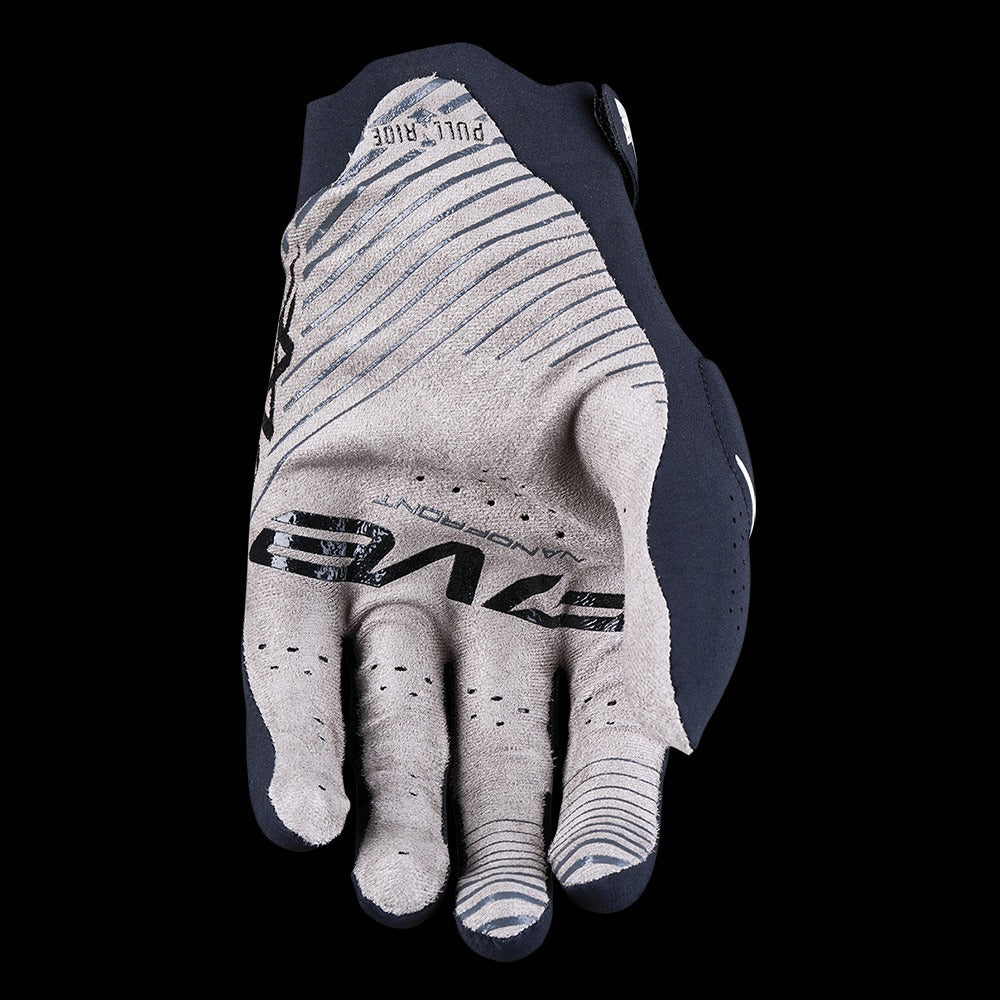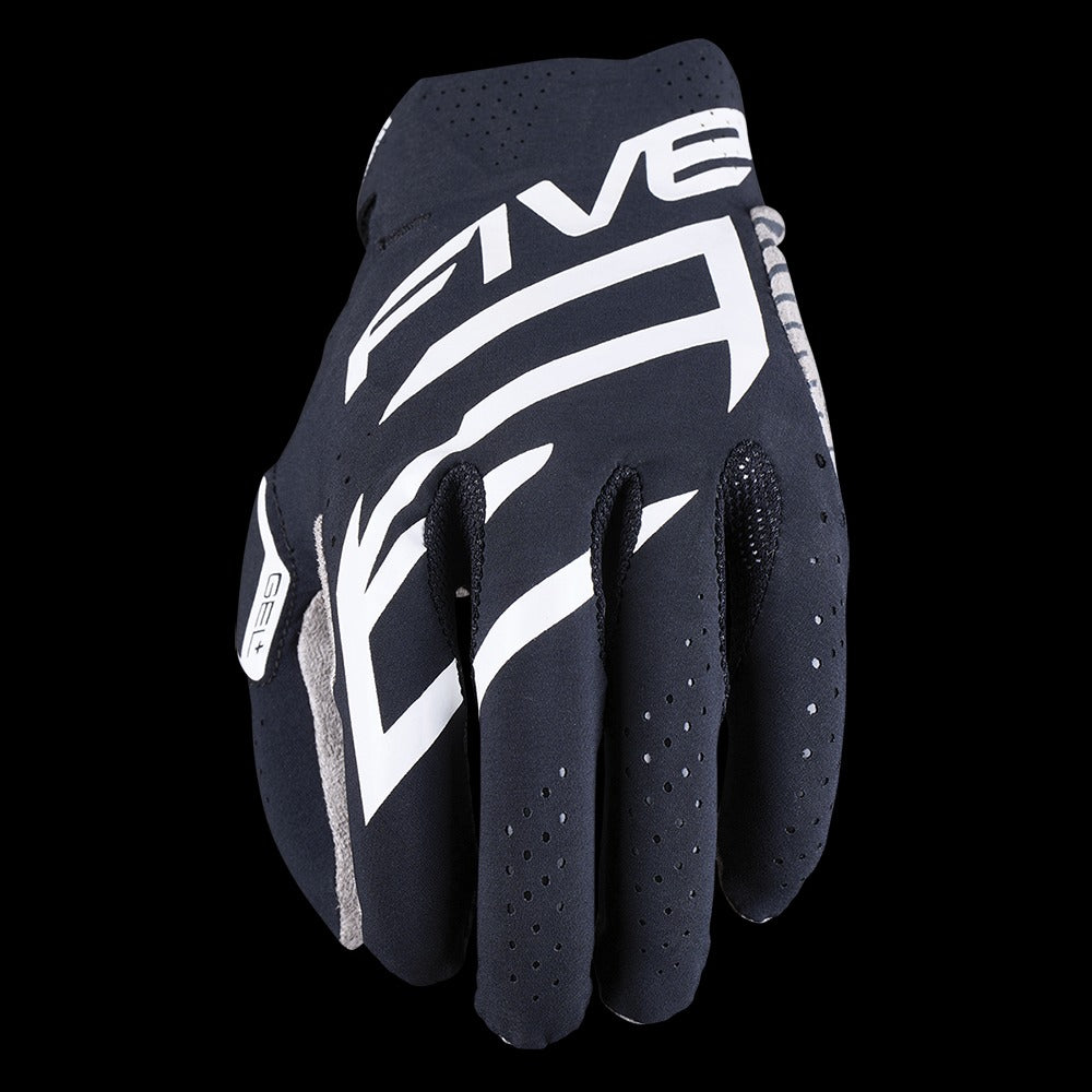THE NEW-GEN MX GLOVE. ABSOLUTE CONTROL. FIVE revolutionized motocross gloves with its MXF PRORIDER that literally broke all the rules. Establishing itself as an absolute benchmark in comfort and performance, it was adopted by many pro and amateur riders alike. Now that it s time to replace it, FIVE is here with not one, but two offerings (the MXF RACE and MXF1 EVO). Here s the first of them: the MXF RACE. Designed for riders with a fluid, light-as-air style, who love being one with their machine and reject the idea of using any type of palm padding so they can better feel the controls and read the terrain, it s meant to be used with Soft grips (preferably). Because, just as you don t use the same level of tire firmness for every kind of terrain, it s important to select your grips carefully depending on your riding style or your preferences (and to match it with the right pair of gloves). The MXF RACE is impressive, because it offers the sensation of wearing nothing at all. It s like a second skin with its Nanofront palm, an ultra-thin, absorbent Japanese material that offers amazing grip, which FIVE began using in motocross gloves with the MXF PRORIDER. Its ultra-thin, ultra-tough stretch nylon topside construction and seamless, heat-fused wrist construction help make it very supportive and comfortable overall. Its fourchettes (finger gaps) in 2:2 Mesh honeycombed fabric and its laser-cut perforations located at strategic points ensure perfect air circulation. What s surprising about the MXF RACE is the level of precision you feel on the handlebars and the quality of each detail that makes it. Such as the anti-blister gel pad at the point of contact with the handlebars, a solution that s far more effective and comfortable than using donuts . Suffice it to say that the MXF RACE is already the top choice for the pro riders who participated in its development. It s what will make the difference, without a doubt, leading you all the way to victory. Focus: Performance and precision Use with Soft grips is strongly recommended. TECHNICAL FEATURES Ultra-thin stretch nylon topside Japanese Nanofront palm/ 0.4 mm thickness for optimum feel at the controls Fused, stitch-free variable multi-layered wrist construction ErgoFit fourchettes in 2:2 Mesh Internal anti-blister gel pad on thumb Velcro- wrist closure Laser perforations on palm, topside, and thumb to evacuate perspiration Silicone print on palm, index, and middle fingers-for better grip Closed-track use only