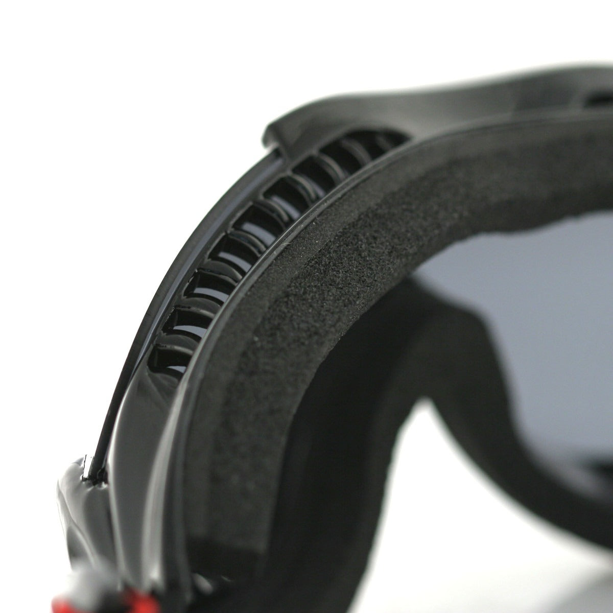 GLOSS BLACK FRAME, 3 LENSES Rise to the challenge with this unique goggle that is the perfect solution for all outdoor enthusiasts. A distinct groove on each side accommodates standard prescription glasses, ensuring a comfortable fit and enabling all to ride in style. The flexible polyurethane frame creates a molded seal over the face, cushioned by a dense layer of sweat-absorbent, neoprene foam. OTG (over-the-glasses) feature. FEATURES 3 Sets of Lenses: Anti-Fog Smoked, Amber, and Clear Fits Over Prescription Glasses Shatter Resistant Polycarbonate Lenses 100% UV Protection Polycarbonate Frame Double Layer Neoprene Foam ANSI Z80.3 CE EN166 Includes Carry Case and Microfiber Cloth