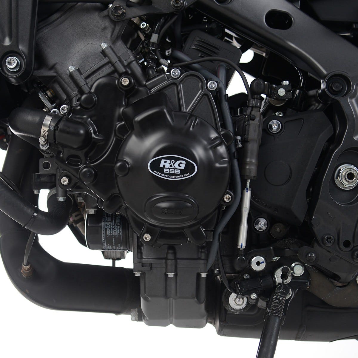 This left-hand Crank & Waterpump cover R&G Race Series Engine Case Cover fits the Yamaha MT-09 (SP) ’21-, Tracer 9 (GT) ’21- and XSR900 ’22- models, protecting the exposed casing from damage in the event of a crash, slide or drop. These exciting new engine case Covers have been developed in collaboration with selected race teams and crash tested within the R&G Racing Suzuki GSX-R Trophy. Crafted from 4mm polypropylene for strength, durability and good looks.R&G's Race Series Engine Case Covers have been specially developed at the request of race teams and riders alike. They include a replaceable puck or slider on the impact face, giving the case not only more meat to grind through to further enhance the protection offered by a standard R&G Engine Case Cover but also offering an easy low-cost fix should you only have a "minor" slide, crash or drop. Engineered to allow just the "puck" to be replaced and your cover to be reused again and again!