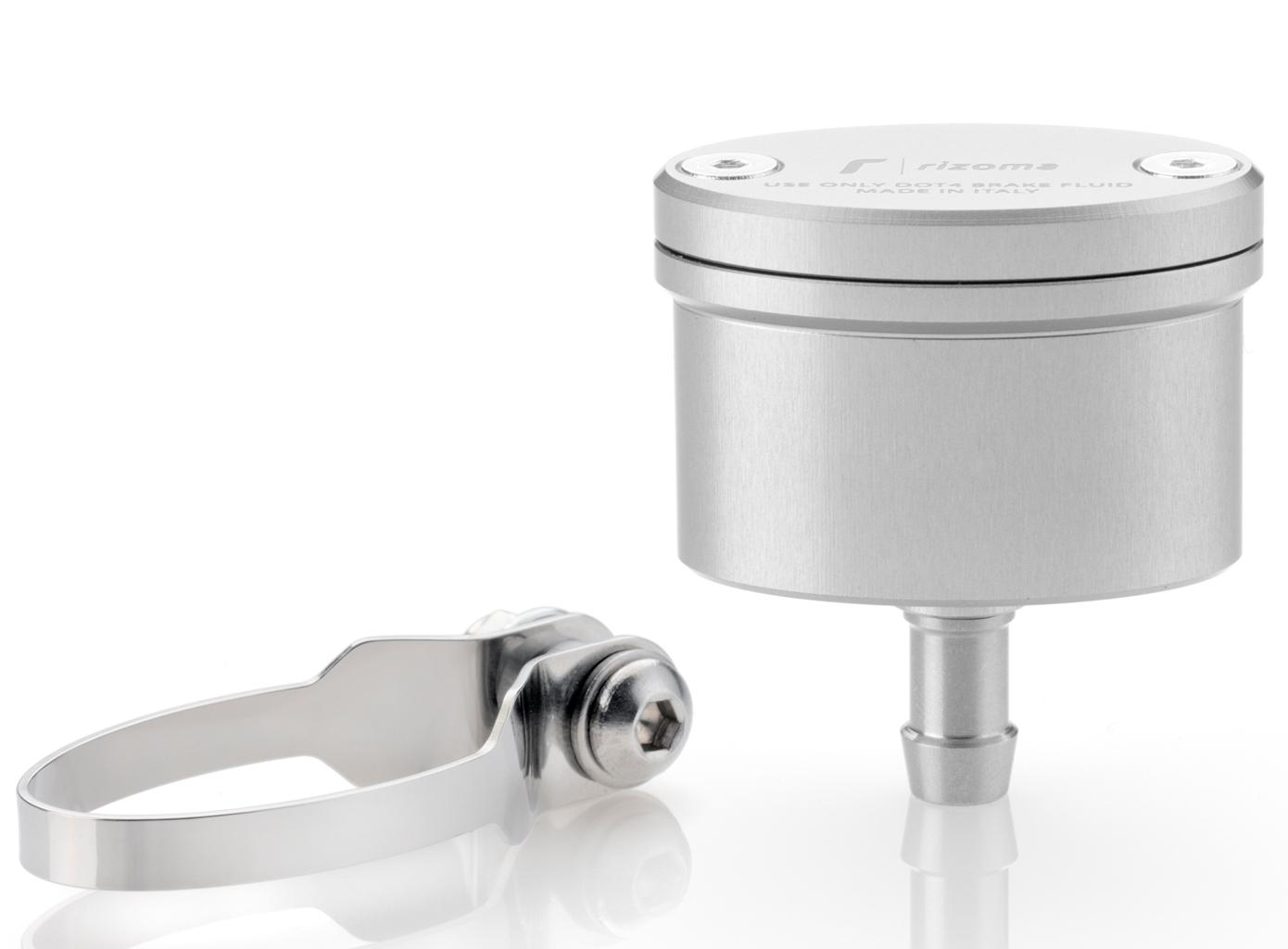 Rizoma Brake/Clutch Fluid Reservoir Next CT115, straight outflow, color Silver.