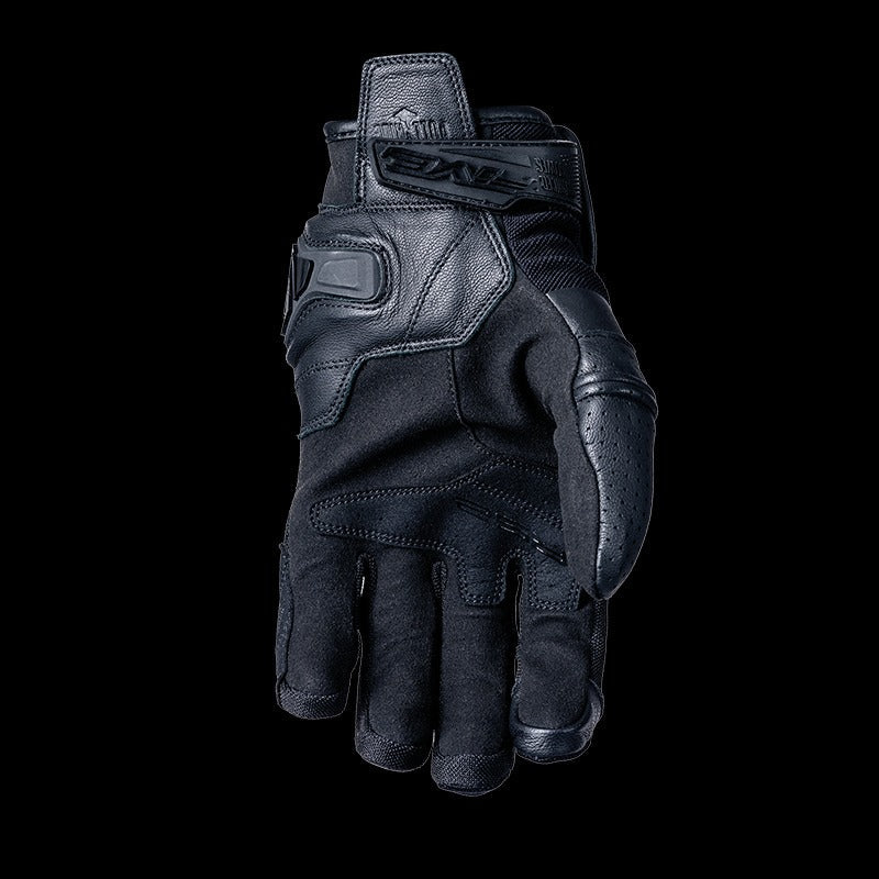 3DMesh wide-cell fabric construction (topside) for ventilation, full-grain goatskin for suppleness, and siliconed Clarino- (palm) for grip Ventilated TPU metacarpal-knuckle and knuckle protective shells Protective Carbon/TPR palm slider Palm reinforcement in perforated Clarino- Airprene and 4-Way Spandex cuff 4-Way Spandex comfort panels Closure system with tab + Velcro and Clarino- on-off pull tab TouchScreen system (thumb and index finger) for touch-screen handling