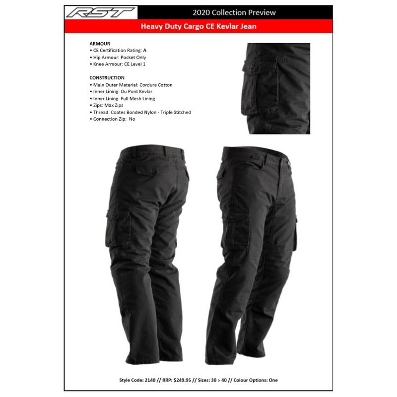 The RST Reinforced Heavy Duty Cargo Kevlar Motorcycle Jeans are made for riding but styled to look like normal jeans. These heavy duty, protective motorbike jeans are CE Certified Level A and made from Codura cotton and reinforced with DuPont™ Kevlar®.