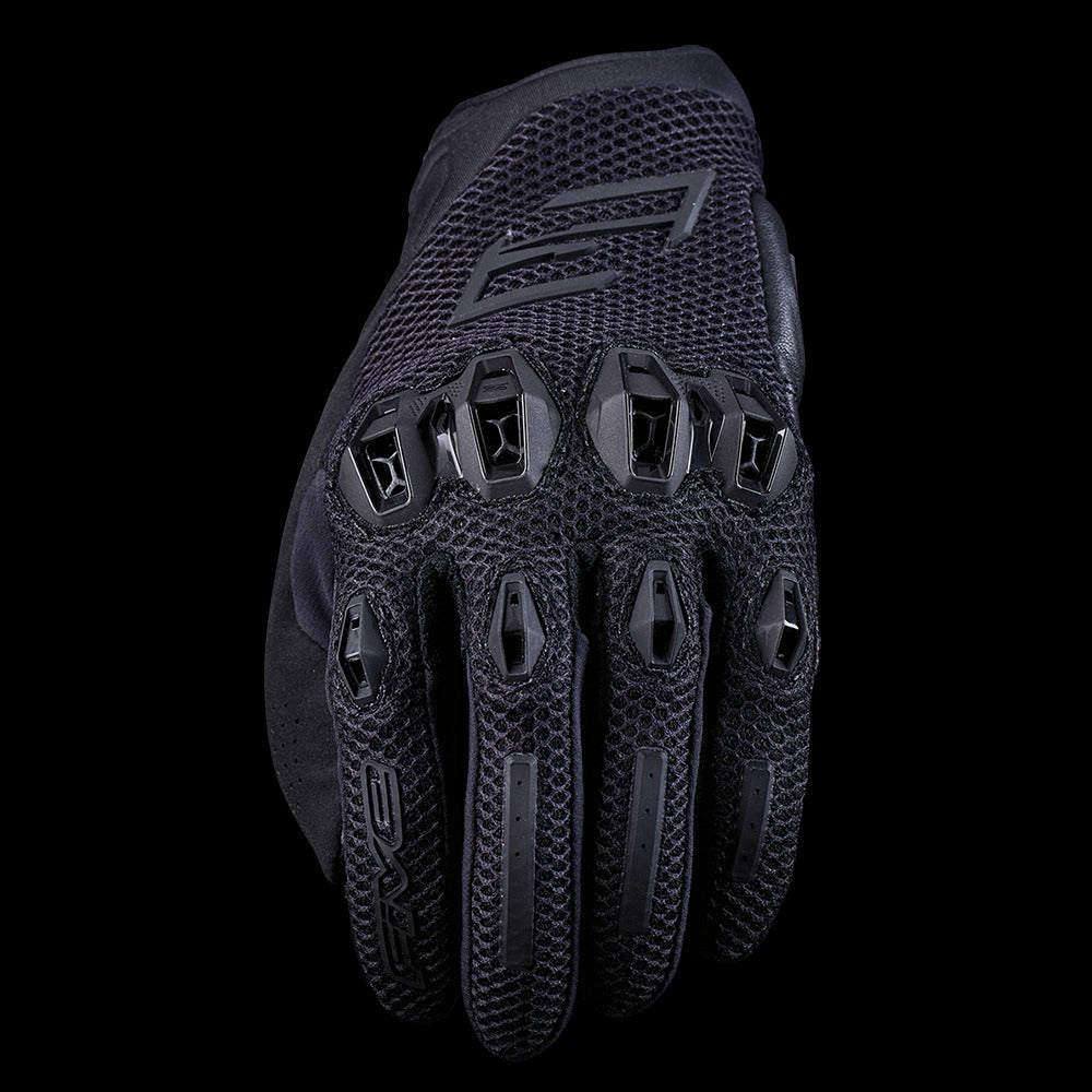 THE STUNT IN A VENTILATED VERSION This is the version of the STUNT EVO2 to use when the mercury starts rising. Its topside construction in ventilated 3D Air Mesh fabric and its perforated full-grain goat leather palm allow for optimal airflow and help perspiration evaporate, since it tends to accumulate when you ride harder than usual. Despite its highly ventilated qualities, the STUNT EVO2 Airflow still offers excellent protection with its AirgoProtech shells inspired by helmet technology (see previous pages), and their particularly innovative design. Its palm hosts a leather reinforcement lined with an ERGO PROTECH� semi-soft, honeycombed protective shell. You clearly choose the STUNT EVO2 for its avant-garde, even futuristic design, but also, and especially, because there s nothing better for taking the controls of a roadster when the city is suffocating in the heat. TECHNICAL FEATURES Air Mesh honeycombed topside construction Full-grain goat leather palm AirgoProtech ventilated metacarpal-knuckle protector ERGO PROTECH� honeycombed palm slider TPR finger protection with air intake vent Softshell thumb construction for optimal finesse and comfort Ultra-tough stretch Nylon fourchettes between the fingers Ergonomic, fused neoprene wristband with integrated velcro closure Touch Screen system on the index finger and thumb CE KP1