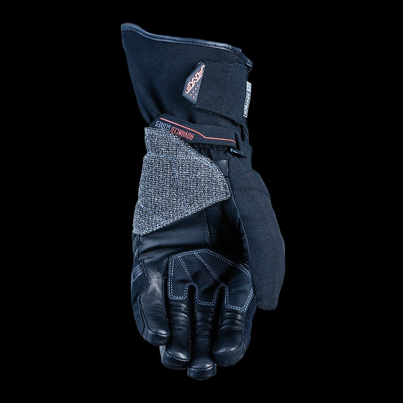 Stretch, water-repellent fabric construction (topside), for dryness and comfort / Full-grain goat leather (palm), for suppleness 5_DRYTECH waterproof, breathable membrane One-piece PVC metacarpo-phalangeal protective shell underneath the fabric / Window-panel construction Soft TPR index and middle-finger knuckle protection Index and middle-finger comfort gussets, with reflective inserts Protective foam reinforcement on all knuckles Forearm protection from a cuff with integrated memory foam Wide Kevlar- reinforcement, from the base of the hand, all the way up to the hypothenar Digital PU palm reinforcement, for better grip on the handlebars Dual closure system (wristband and cuff) using an elastic strap and Velcro- Adjustment tab concealed underneath a Kevlar- panel Retro-reflective fabric on the wristband Lycra--style fourchettes (between the fingers) Clear Vision Pad visor-cleaning system on the left-hand side Touch Screen system (on the index finger) for handling electronic devices